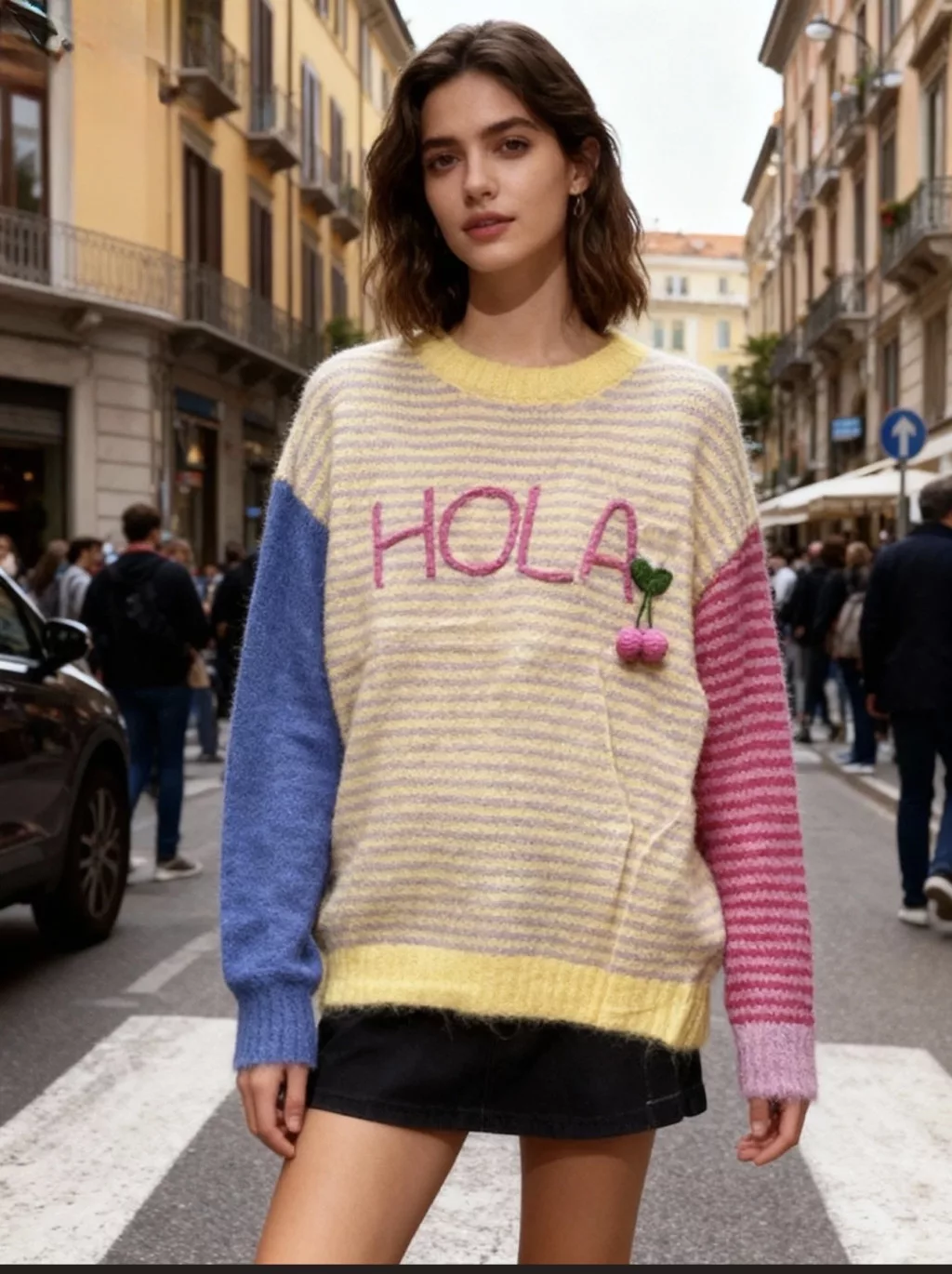 Beunique Fashion 3D mintás multicolore pulcsi Blue One Size