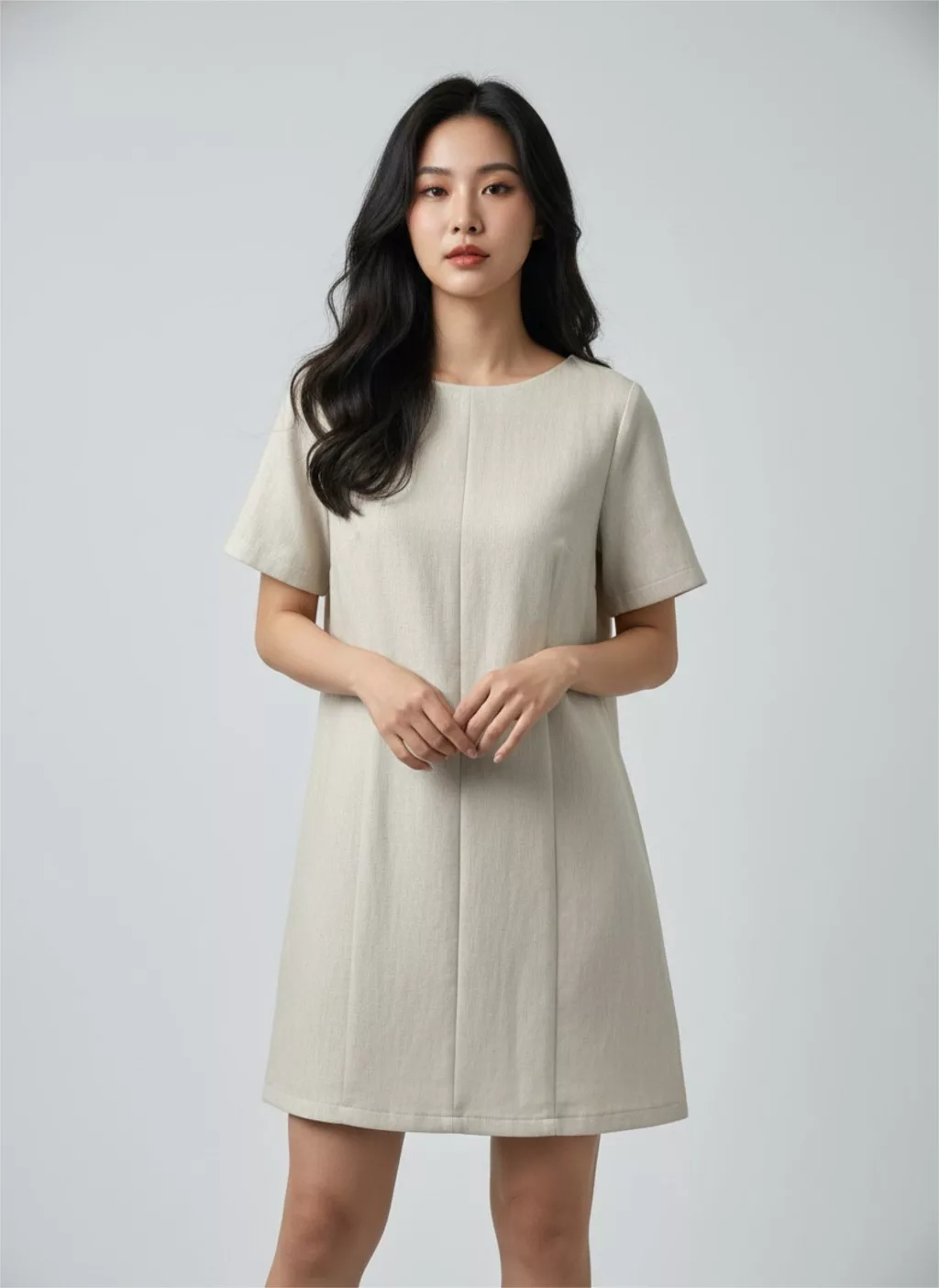 BeUnique Fashion bőrhatású A vonalú ruha Beige One Size
