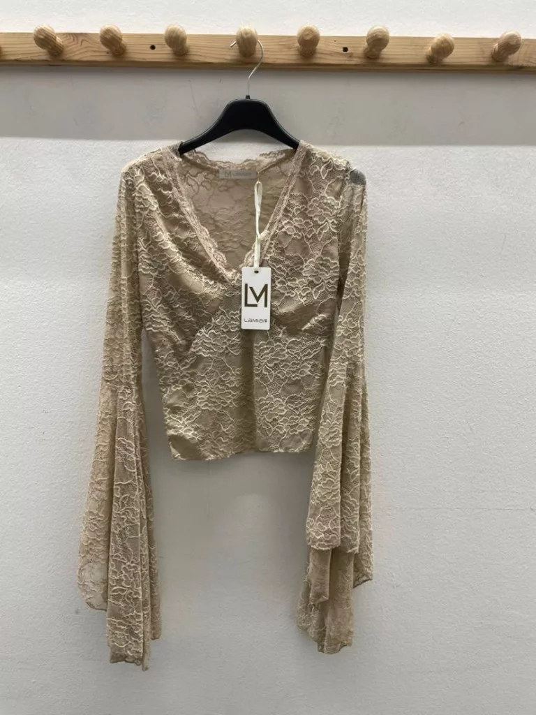 BeUnique Fashion csipke felső zsabós ujjal Beige One Size