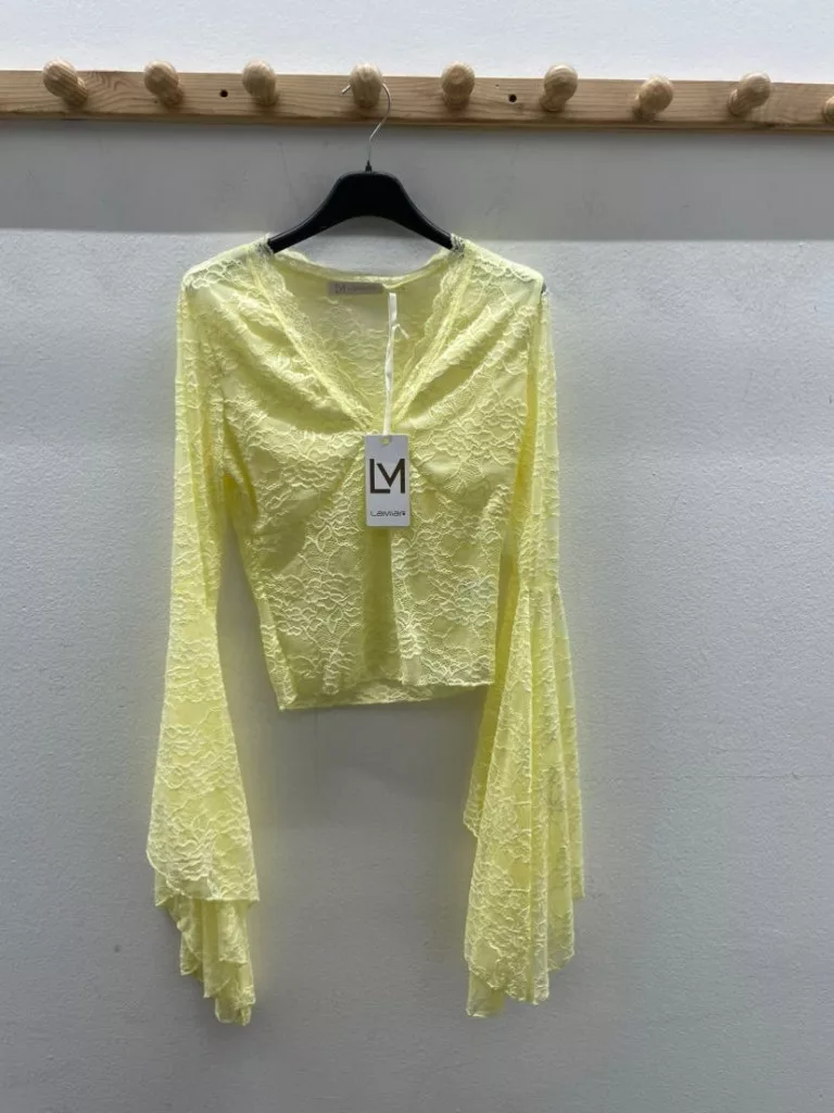 BeUnique Fashion csipke felső zsabós ujjal Yellow One Size