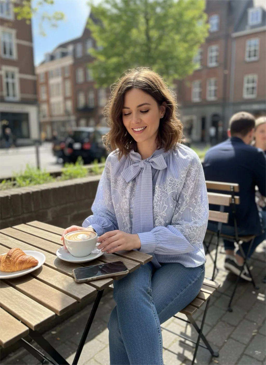 BeUnique Fashion nyaknál megkötős csipkerátétes hajszálcsíkos ingbúz Light Blue One Size