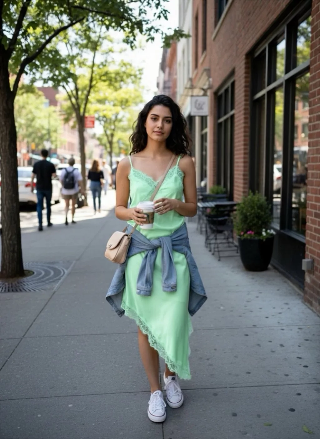BeUnique Fashion szatén csipkeszegős ruha Mint Green One Size