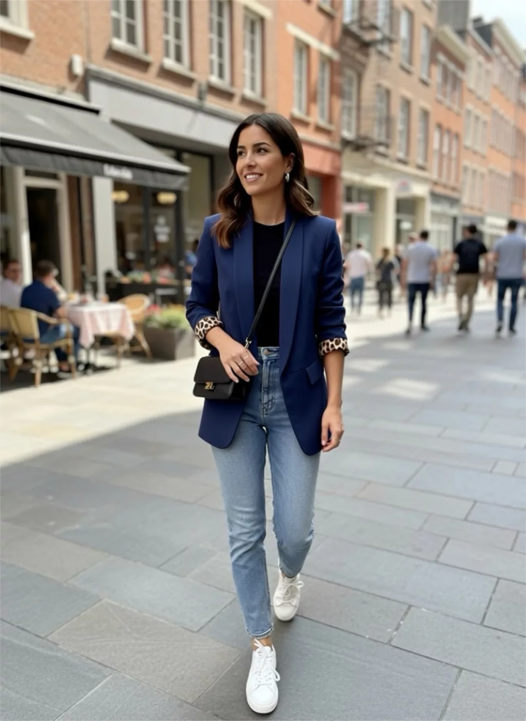 BeUnique Fashion zakó leopárdos felhajtóval Dark Blue One Size