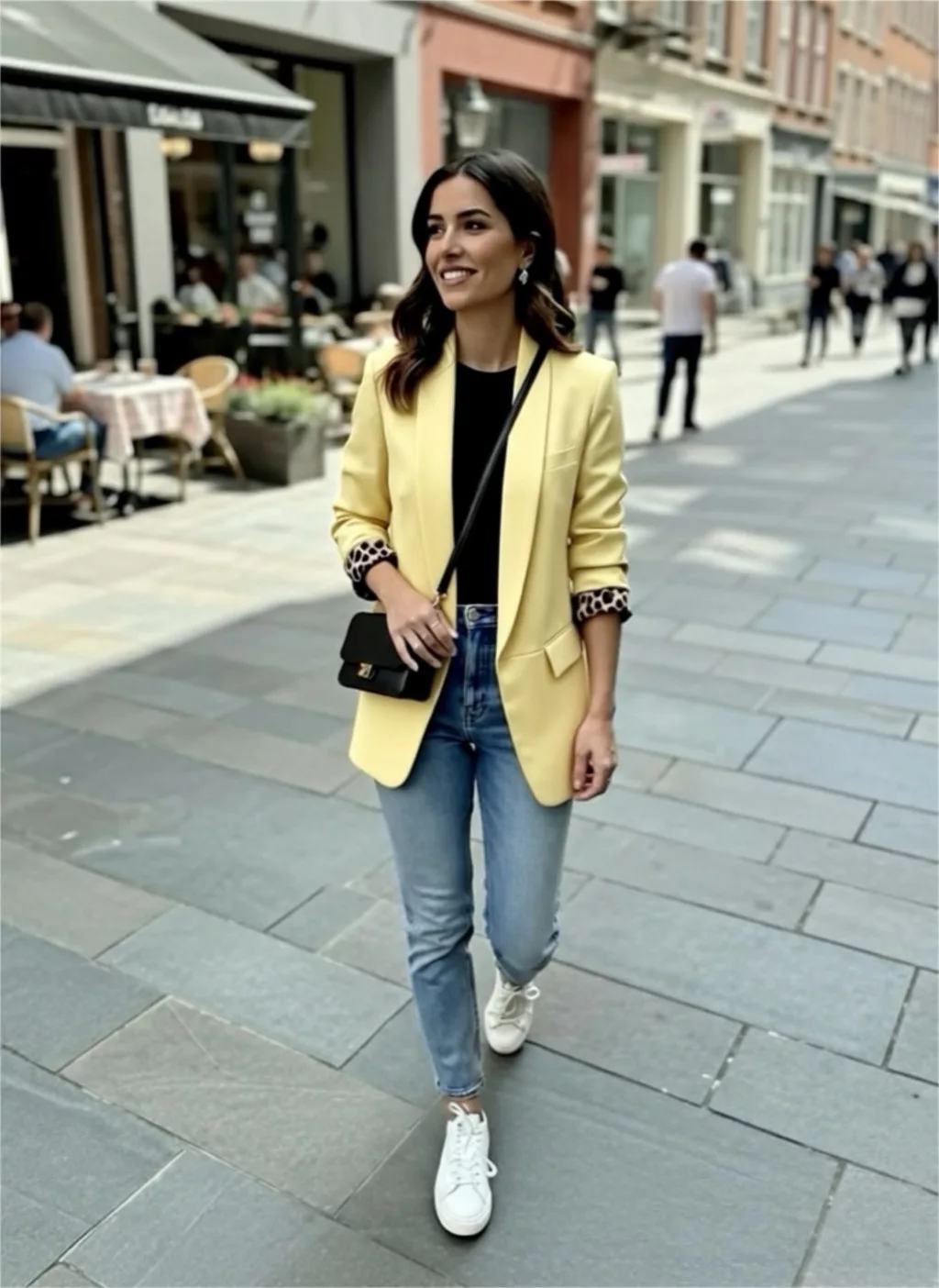 BeUnique Fashion zakó leopárdos felhajtóval Yellow One Size