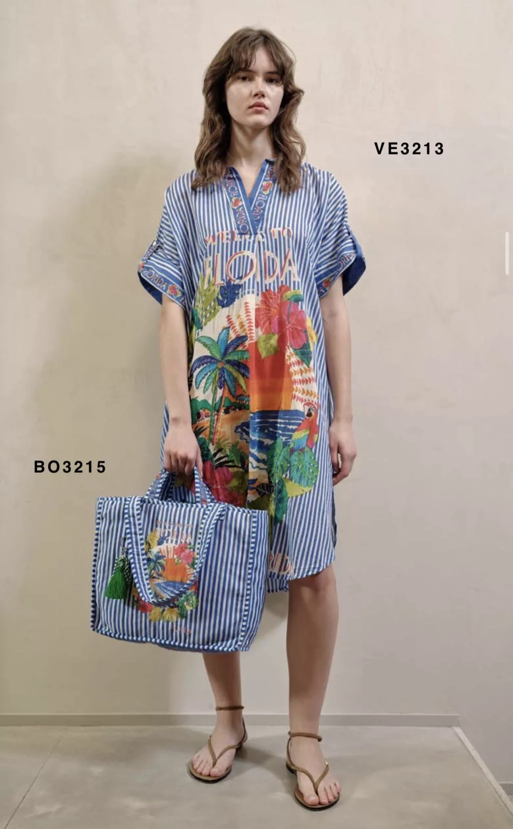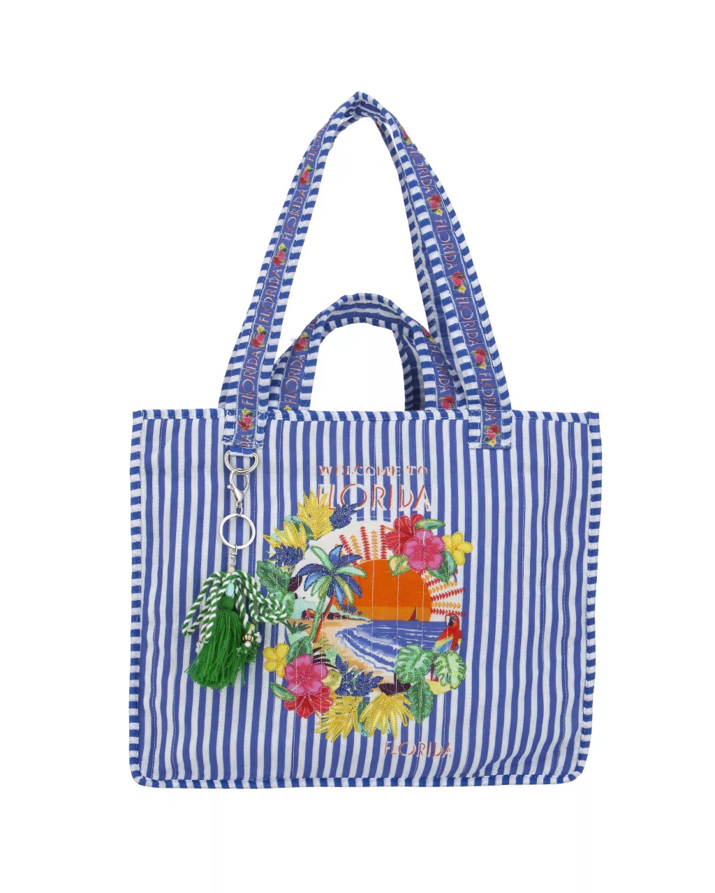 Beunique Fashion kék csíkos textíl táska trópusi mintával pántján dísszel