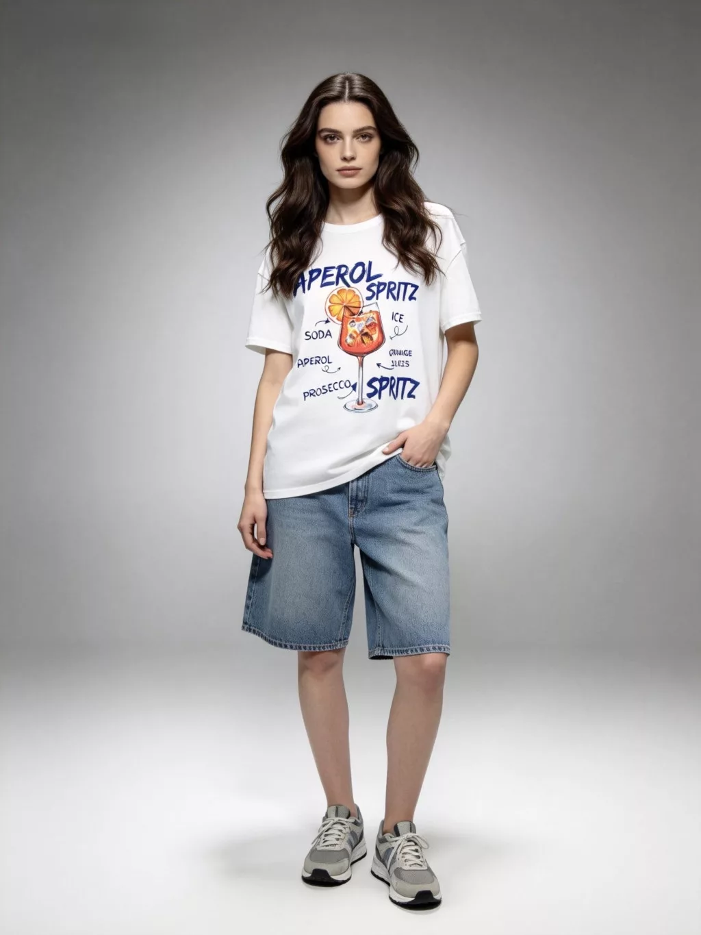 Beunique Fashion pamut póló Aperol mintával Beige