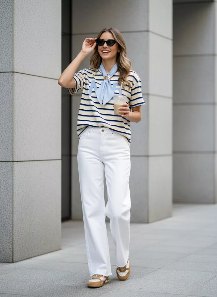 Beunique Fashion pamut tengerész mintával sál kiegészítővel mintával Blue