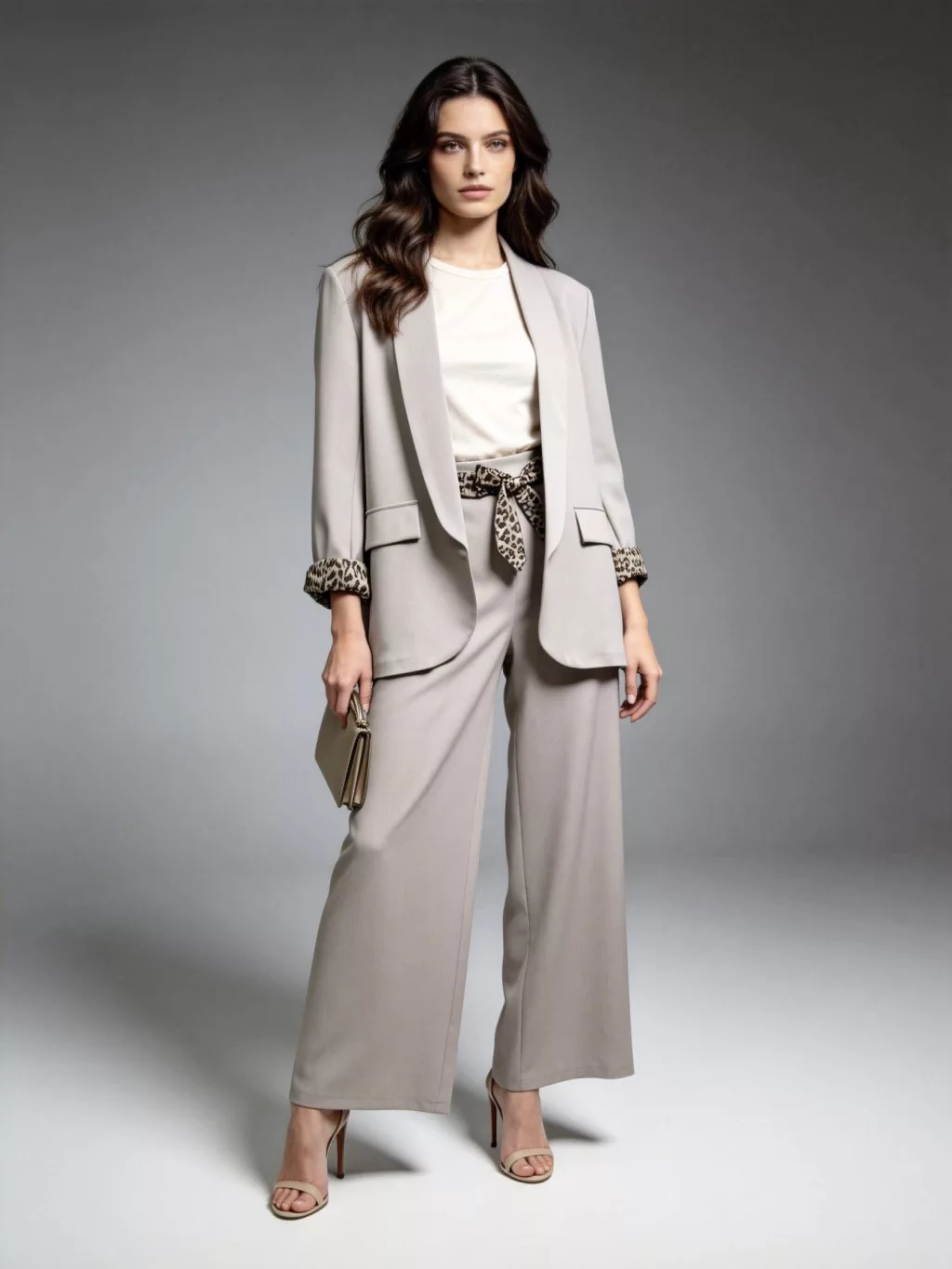 Beunique Fashion párduc mandzsettás palazzó nadrágos párduc öves szett Dark Beige One Size