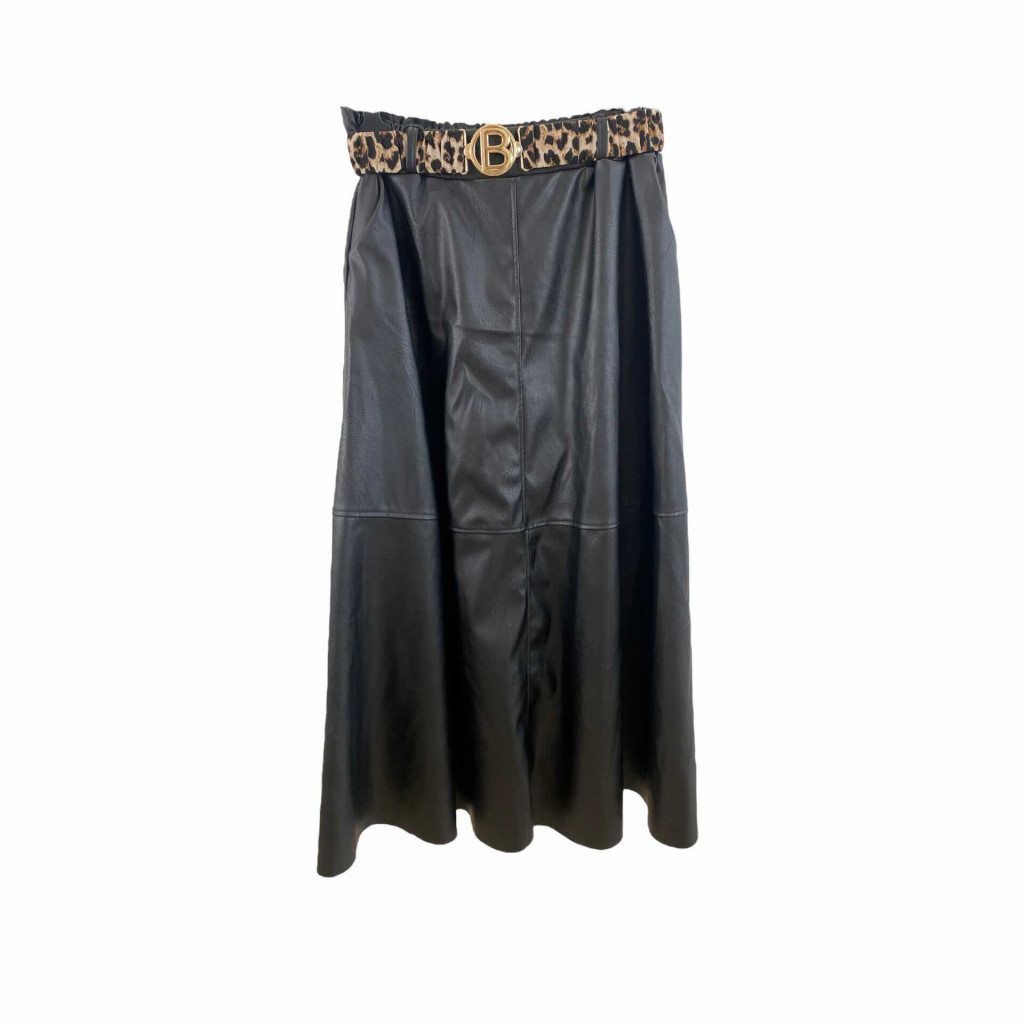 Beunique Fashion Bőrhatású maxi szoknya zsebes állat mintás övvel Black One Size