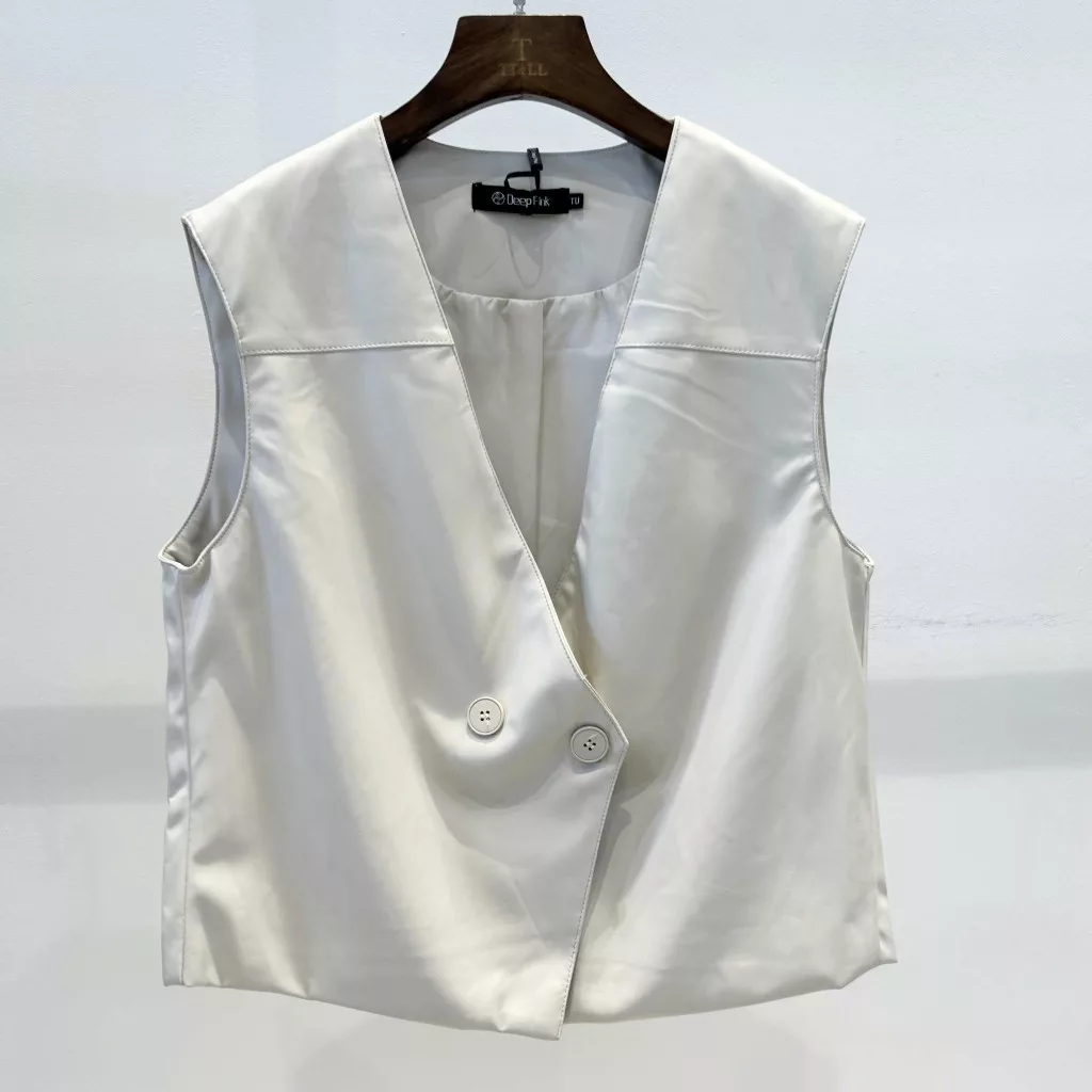 Beunique Fashion Bőrhatású mellény gombos Apricot One Size