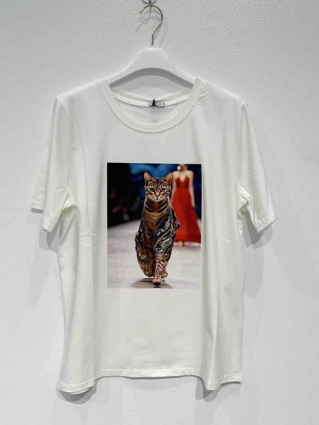 BeUnique Fashion Csíkos macskás póló Strips Cat One Size