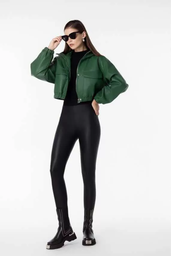 Beunique Fashion Ecobőr dzseki bomber fazon dark green