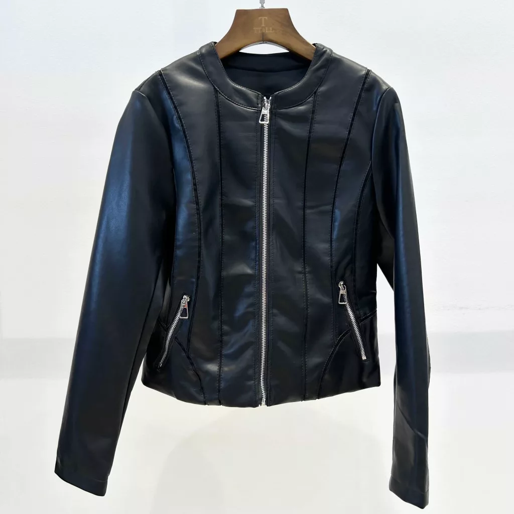 Beunique Fashion Ecobőr dzseki fekete zipzáras