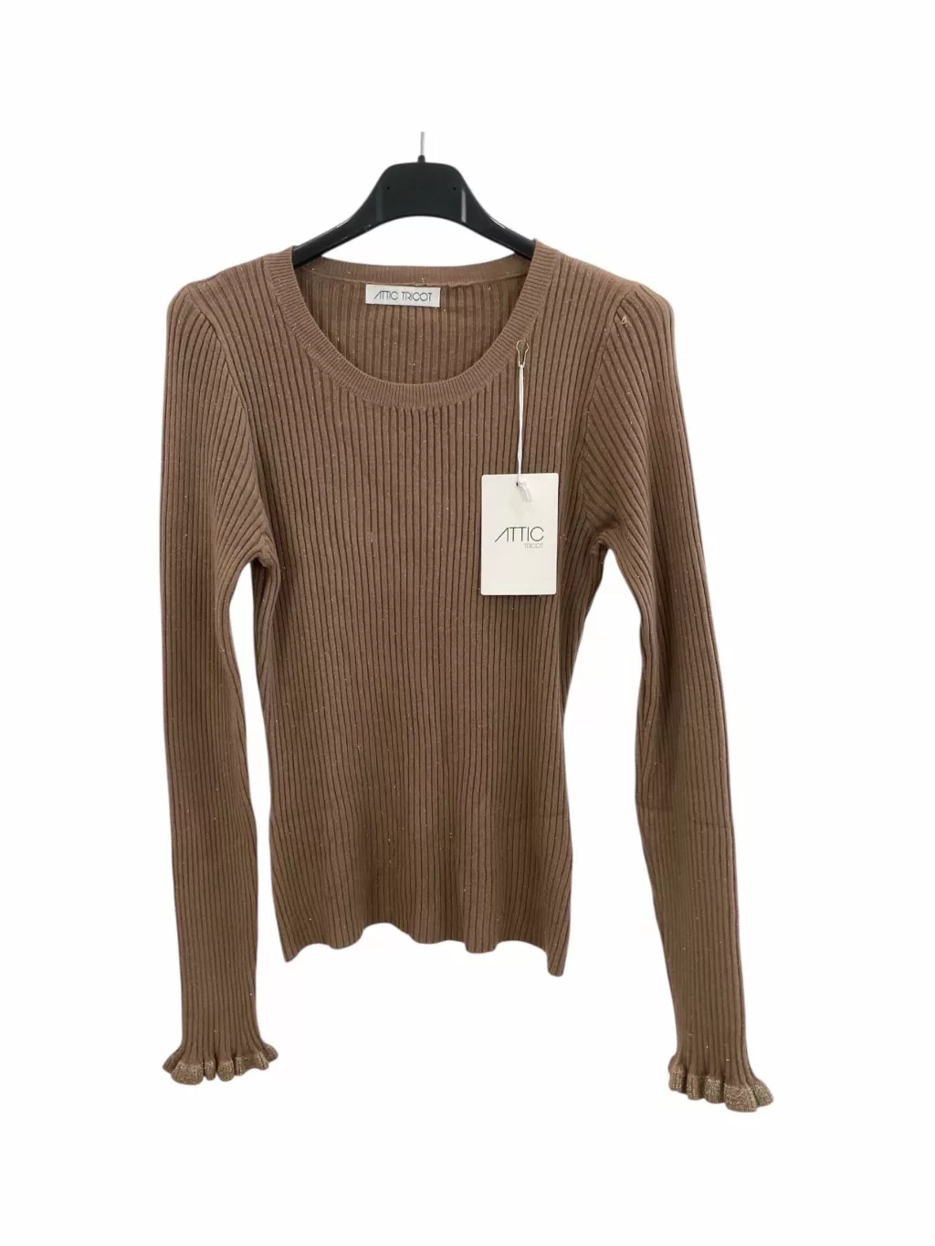 Beunique Fashion Fényes szálú bordáskötött pulcsi Taupe One Size