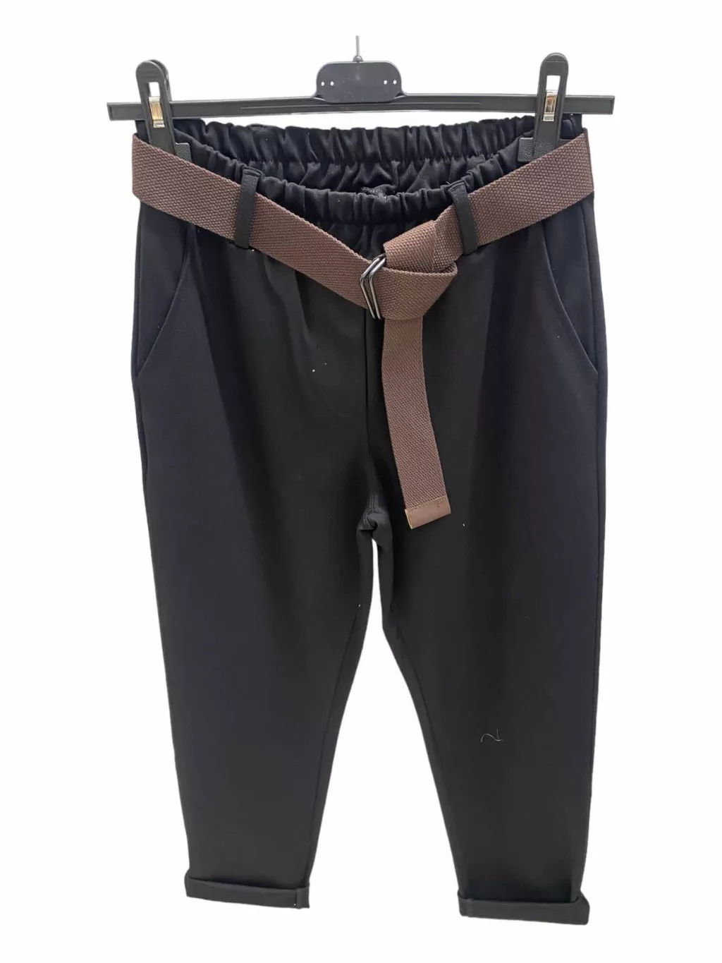 Beunique Fashion Francia zsebes pamut nadrág övvel Black S