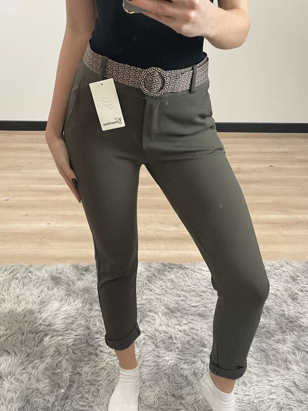 Beunique Fashion Francia zsebes pamut nadrág övvel Military Green M