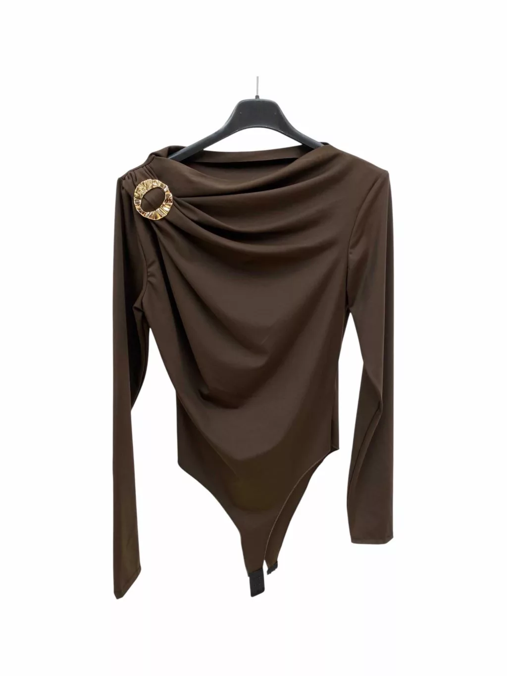 BeUnique Fashion Hidegselyem body arany dekor gombbal Coffee One Size