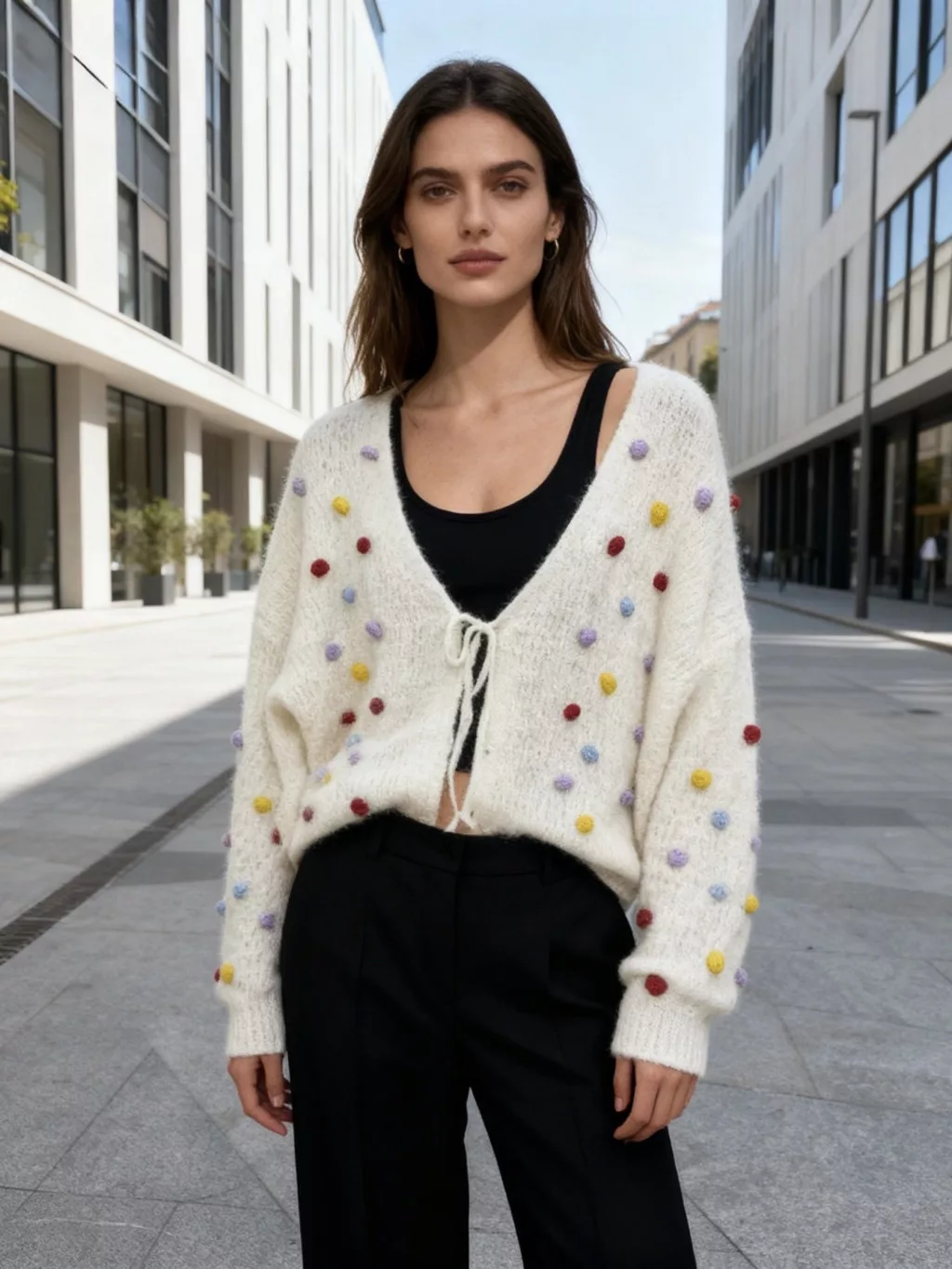 Beunique Fashion Horgolt kardigán 3D pötyökkel Beige One Size