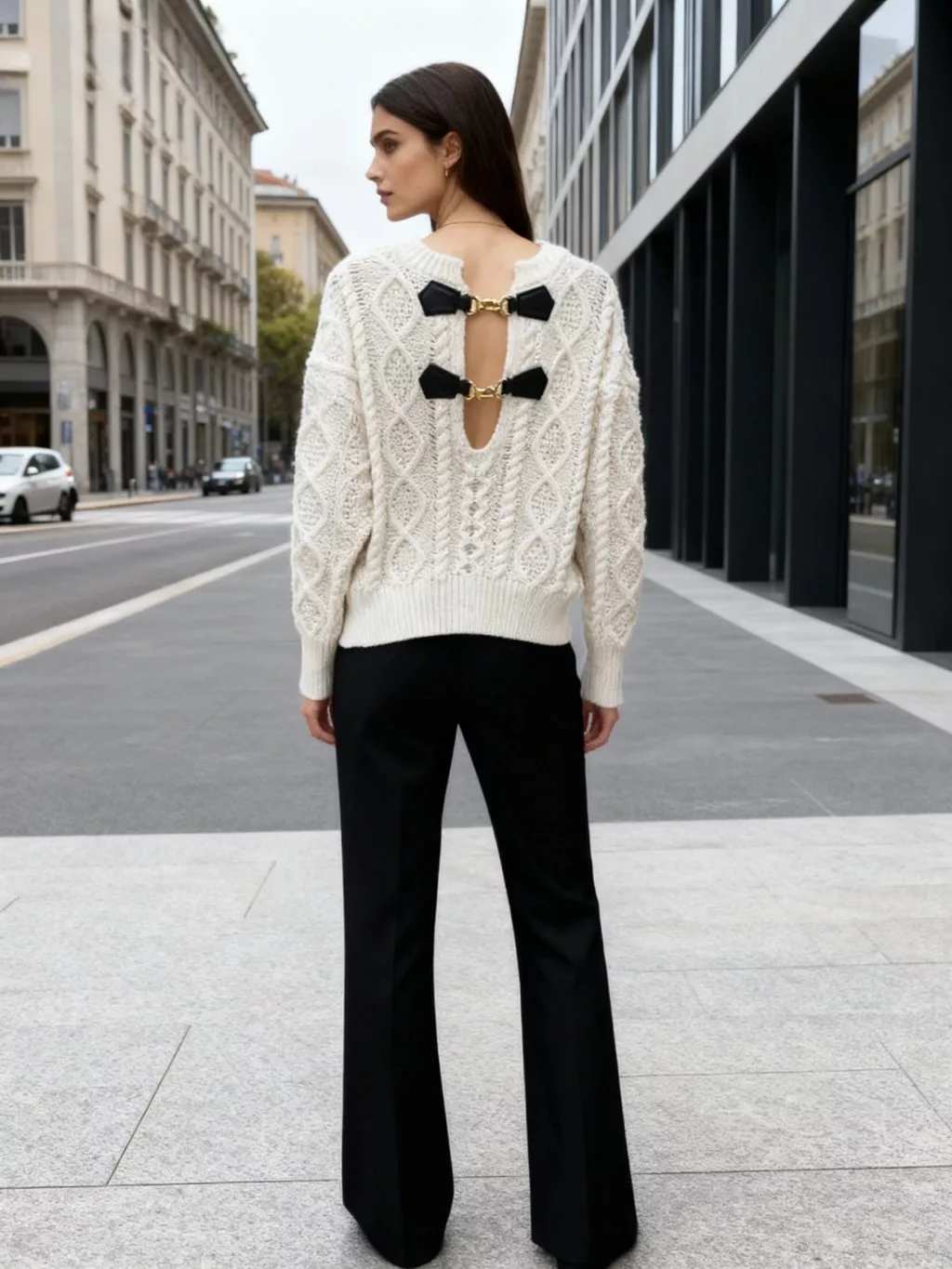 Beunique Fashion Horgolt pulcsi hátán arany karabíner dísszel Beige One Size