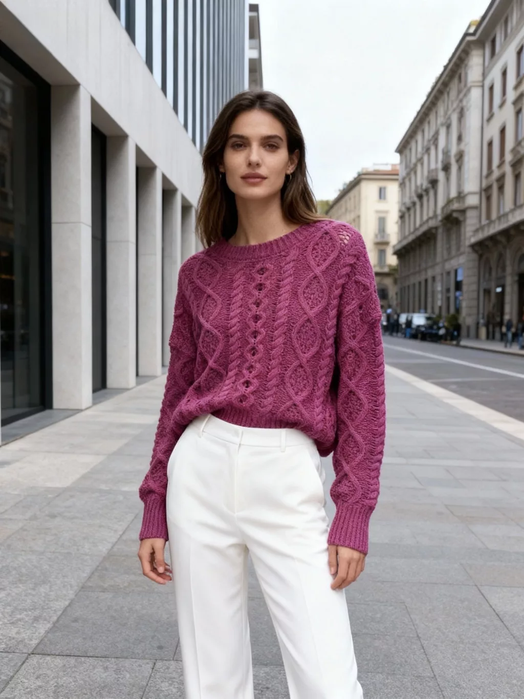 Beunique Fashion Horgolt pulcsi hátán arany karabíner dísszel Fuchsia One Size