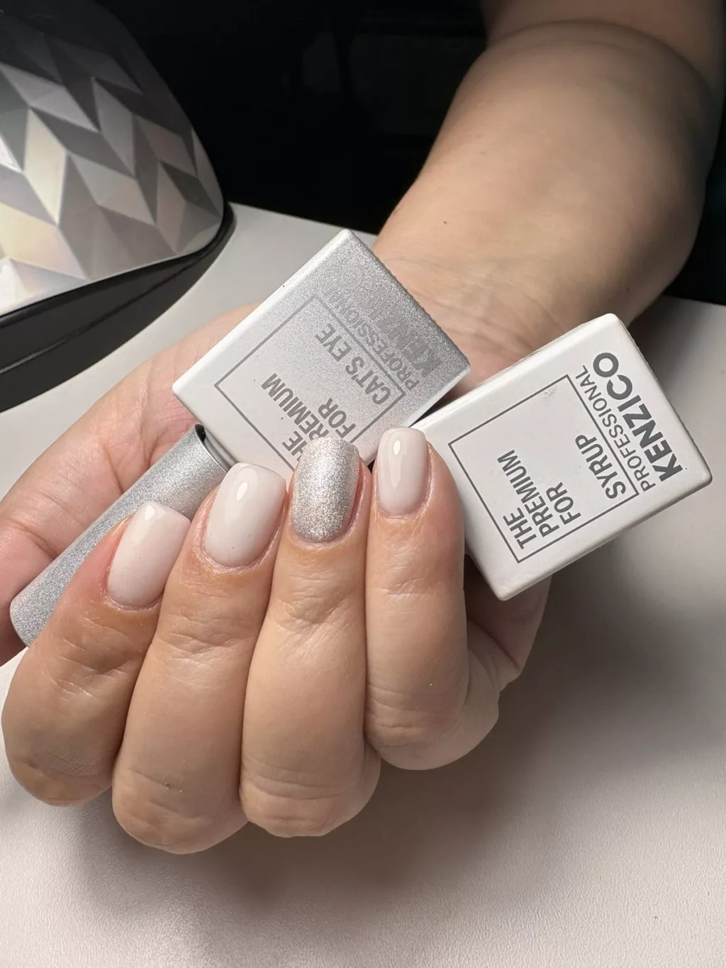 A Kenzico Unicorn Aurora Cat's Eye lakkok extra finomságú fémes pigmenteket tartalmaznak, amelyek mágnes hatására fénycsíkokat és háromdimenziós mozgást eredményeznek a körömfelületen. A CE-401 árnyalat krémes, könnyen kezelhető textúrájú, önállóan is használható, de különösen látványos sötétebb alaprétegen.