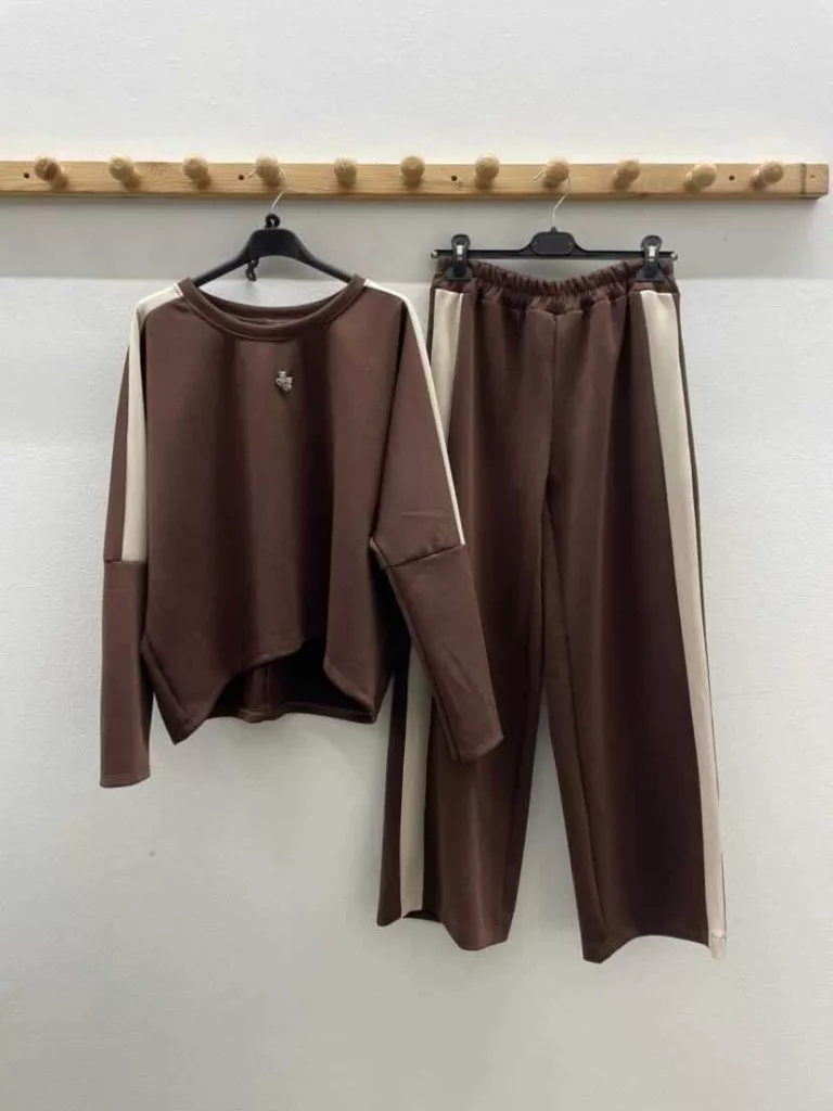 BeUnique Fashion Kétrészes oldalt arany passzés melegítő szett Coffee One Size