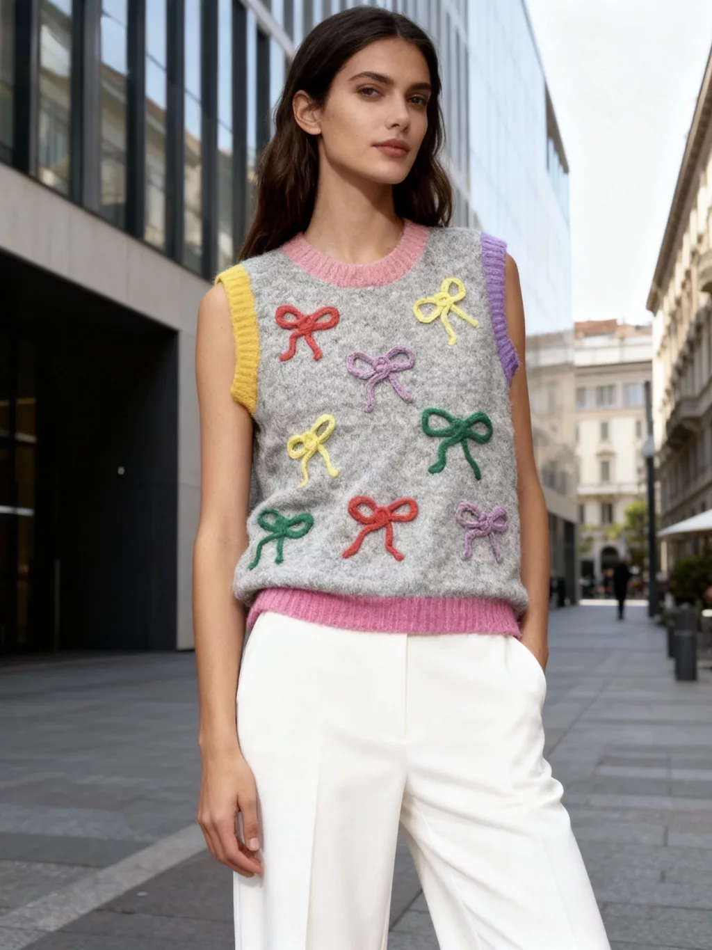 Beunique Fashion Kötött masni hímzett mellény Grey One Size