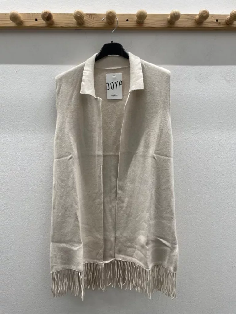 Beunique Fashion Kötött mellény alján rojtokkal Beige One Size