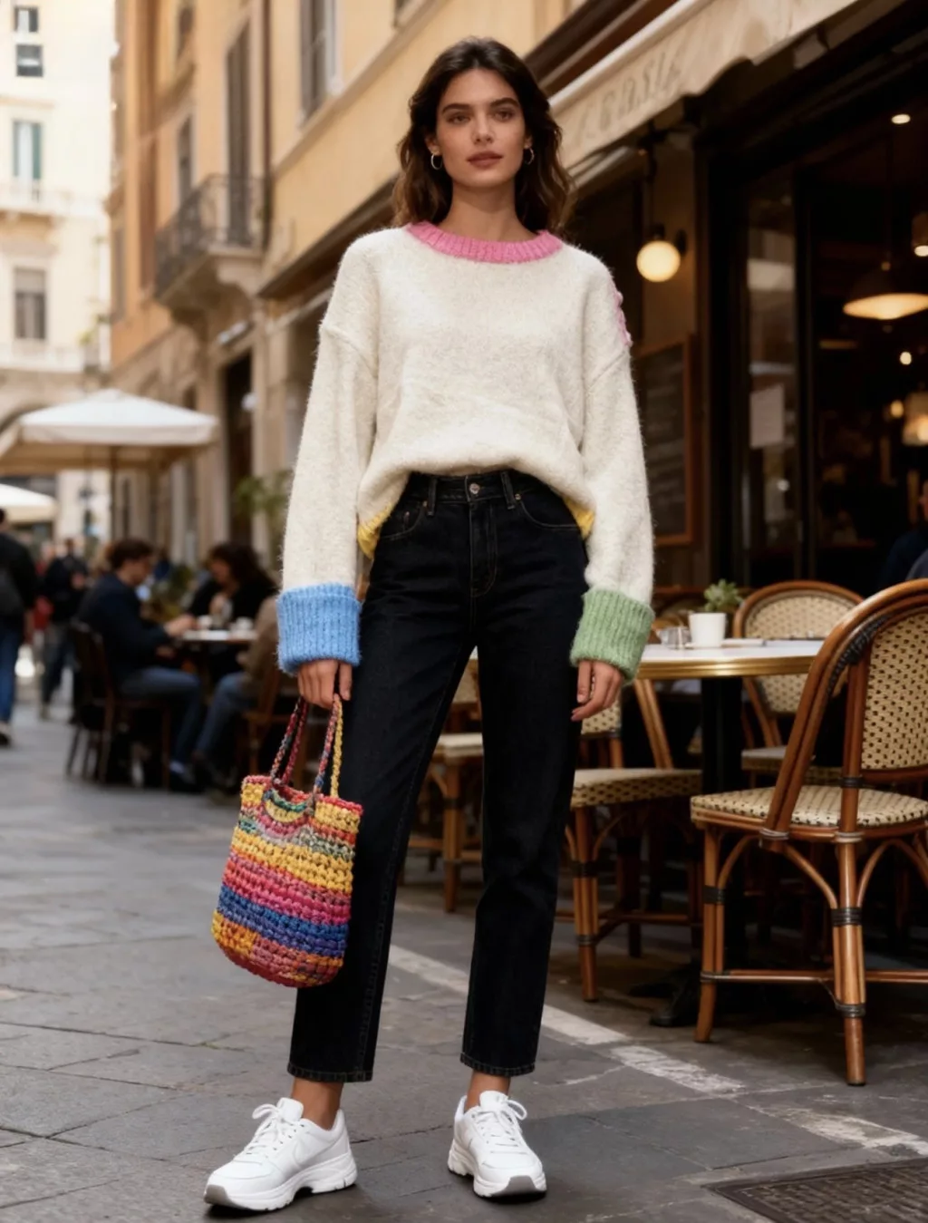 Beunique Fashion Kötött pulcsi multicolor gomd dísszel Beige One Size