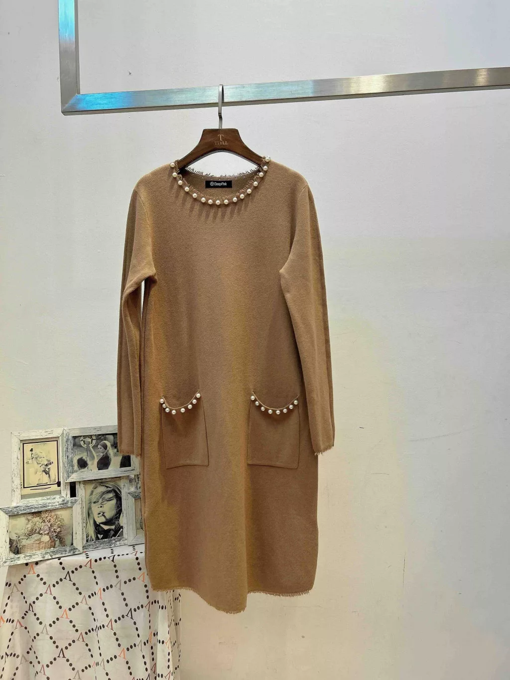 Beunique Fashion Kötött ruha gyöngyös nyakdíszítéssel Taupe One Size
