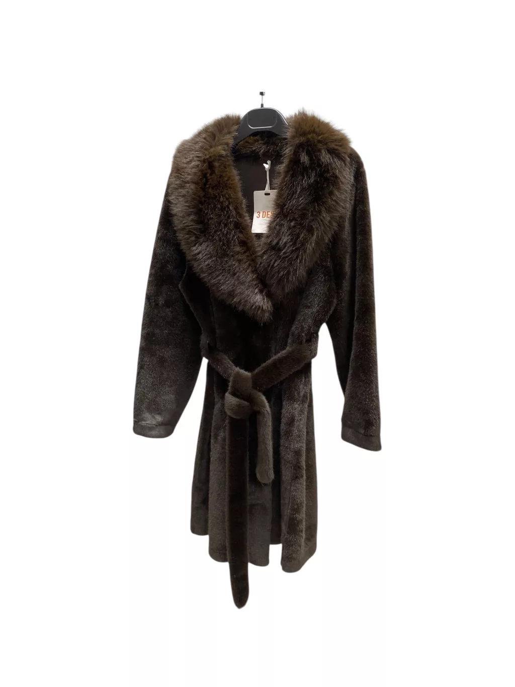 Beunique Fashion Megköttős szőrme kabát Prém gallérral Coffee M méret