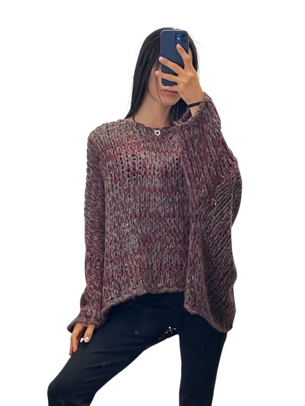 Beunique Fashion Melírozott oversize kötött pulóver bordó One Size