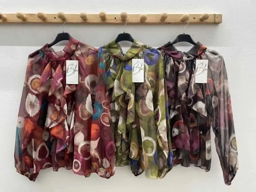 Beunique Fashion Mintás zsabós blúz Orange One Size