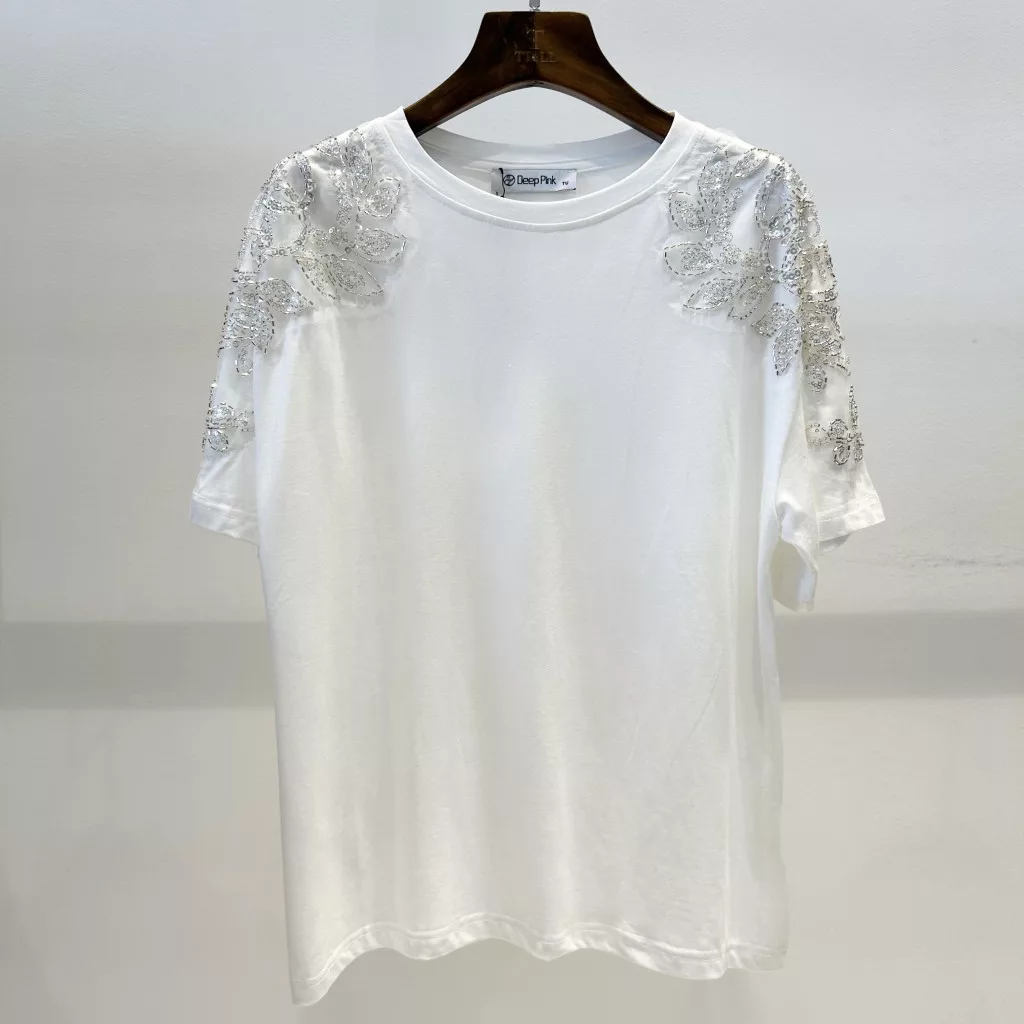 BeUnique Fashion Válnál Kövekkel dekorált felső fehér One Size