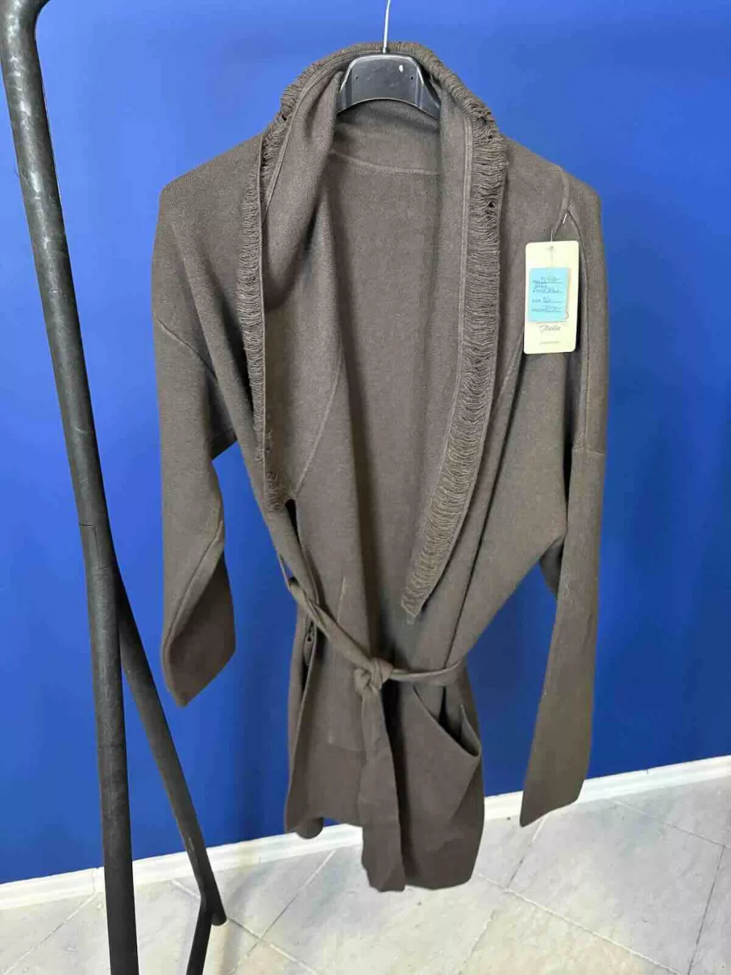 Beunique Fashion Kötött megkötős kardigán gallérján rojtos díszítéssel Coffee One Size